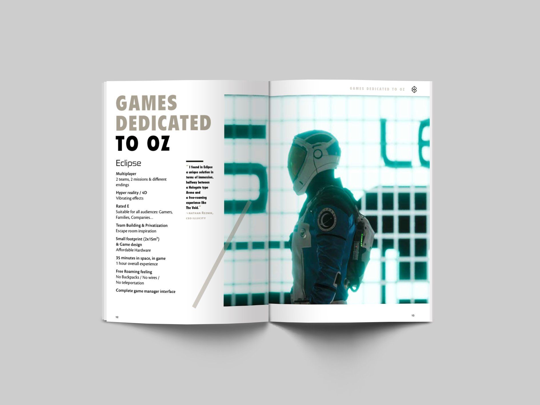 Réalisation du catalogue de l’entreprise, avec la présentation de leurs offres, des prix, et des futurs jeux en réalité virtuelle.